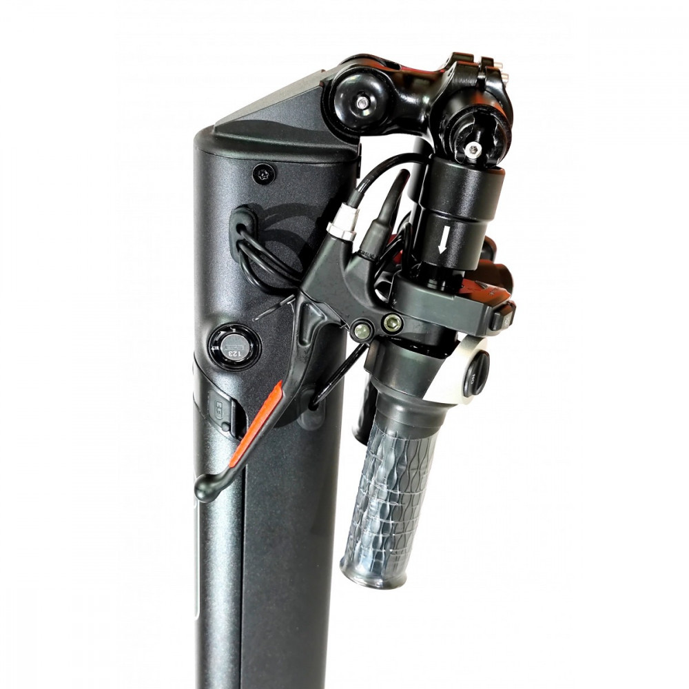 - Индивидуальная настройка: Вы можете выбрать удобный для себя вариант управления — ручку газа мотоциклетного типа, а также механический или электронный тормоз. Дисплей отображает всю необходимую информацию: скорость, заряд, пробег. Предусмотрена возможность жесткого ограничения скорости для повышения безопасности. Встроенный круиз-контроль позволяет зафиксировать нужную скорость.