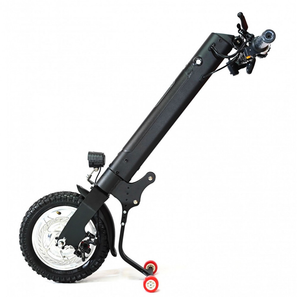 Электрическая приставка YouGo Premium 12 — это мощное и комфортное решение, которое превращает вашу инвалидную коляску в надежный электроскутер. Благодаря увеличенному 12-дюймовому колесу она легко преодолевает неровности и обеспечивает плавное движение, даря вам полную свободу и независимость.