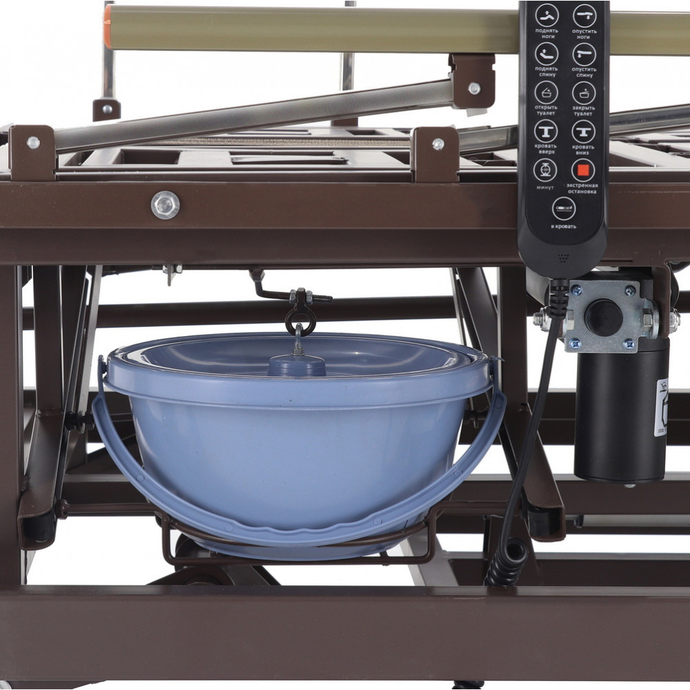 Представляем электрическую функциональную медицинскую кровать Med-Mos DB-11А (артикул DB-11А / МЕ-5528Н-04) – это современное, многофункциональное устройство, разработанное для обеспечения максимального комфорта пациента и значительного облегчения работы медицинского персонала. Модель объединяет в себе передовые технологии, такие как электрические приводы, функция бокового переворачивания, инновационное туалетное устройство xBIO и уникальный режим «кардиокресло». Элегантные торцевые спинки из ЛДСП в цвете венге придают кровати изысканный внешний вид, делая её идеальным выбором как для современных медицинских учреждений, так и для уютной домашней обстановки.
