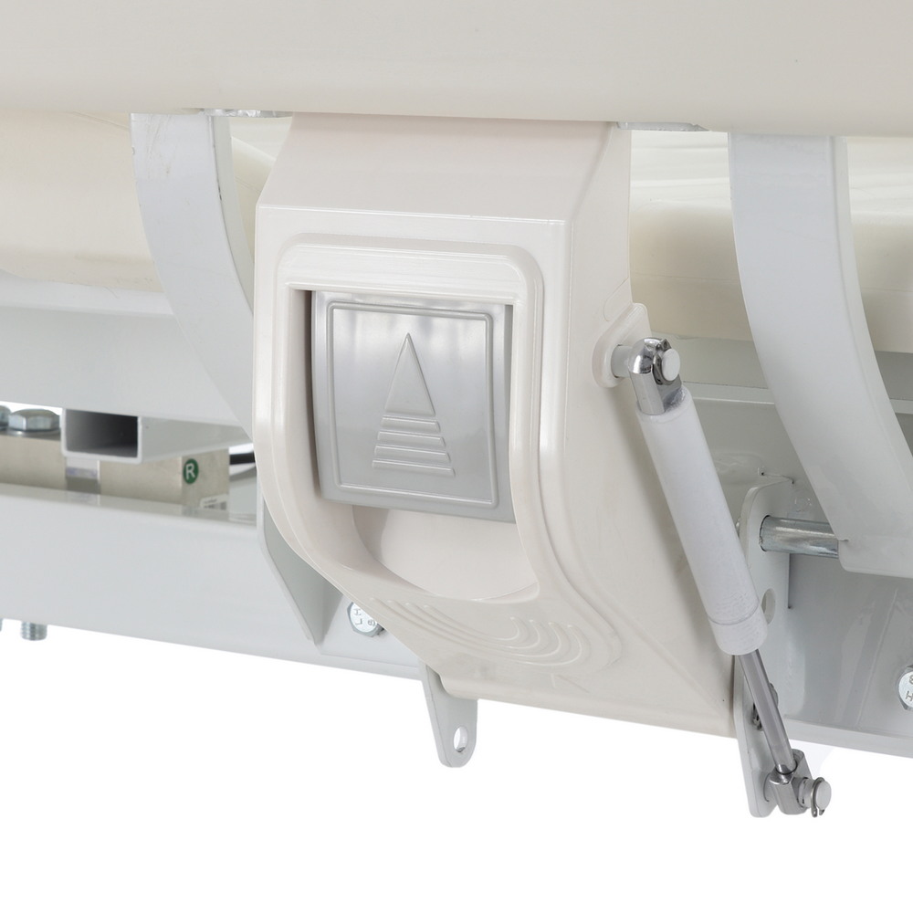 Рентгенопрозрачность: Ложе кровати (размер 192,5×90 см) состоит из 4 секций и выполнено из рентгенопрозрачного полипропилена. В каркас ложа встроен лоток для рентген-кассеты (34×59 см), что позволяет выполнять снимки без перемещения пациента.