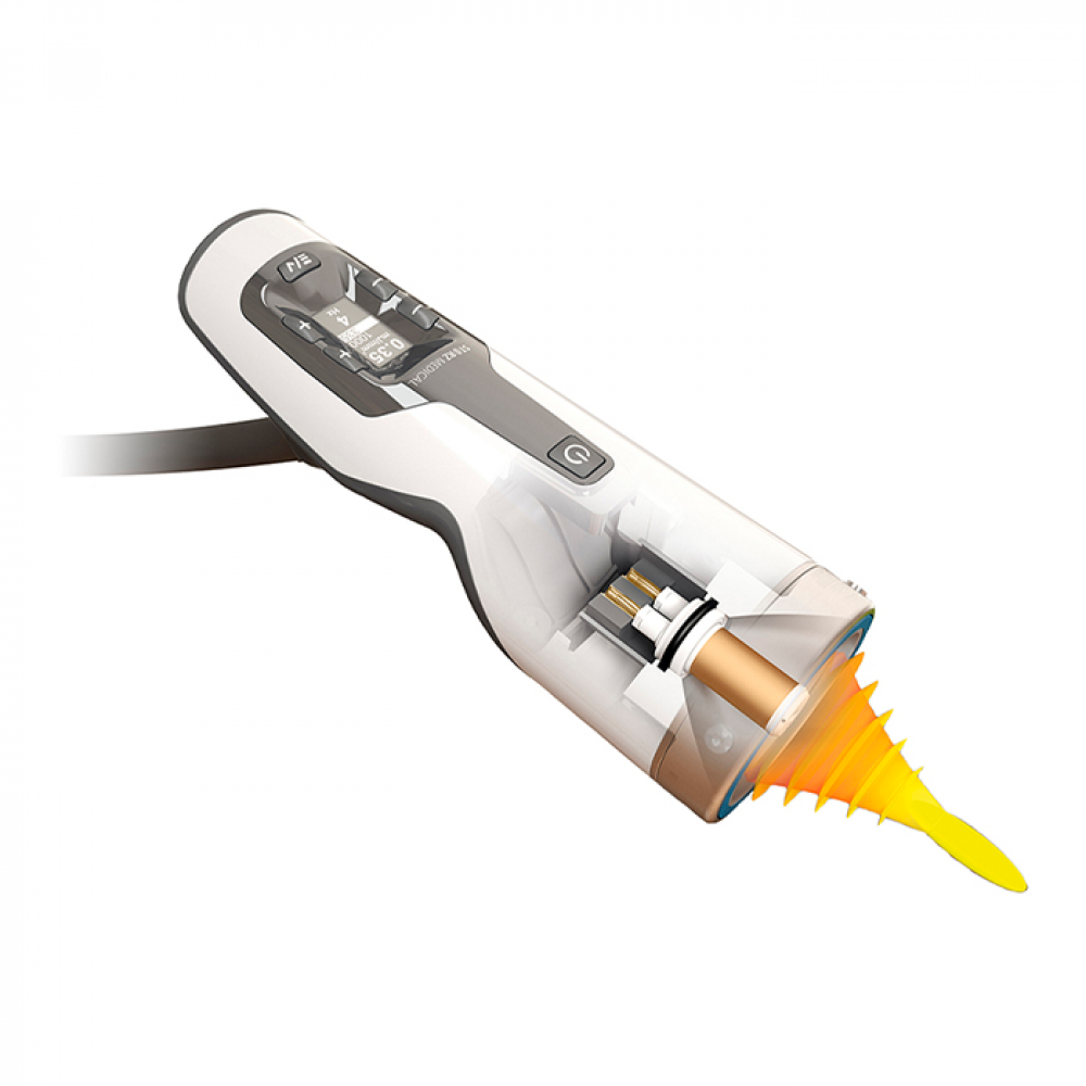 - Все элементы управления интегрированы в дисплей рукоятки, что делает процесс терапии максимально удобным и интуитивно понятным.