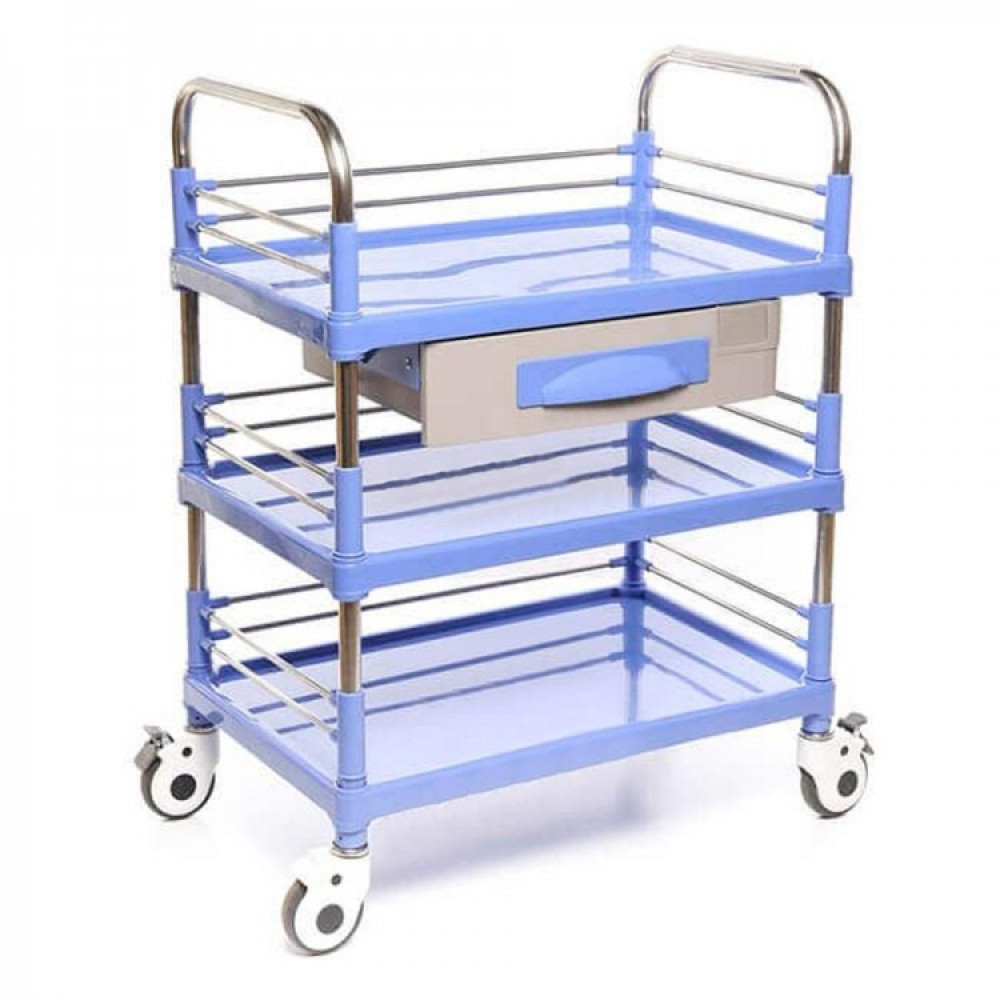 Стол манипуляционный медицинский с выдвижным ящиком, трехполочный МЕТ SIY-150