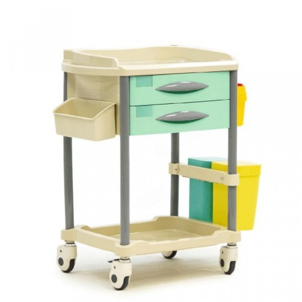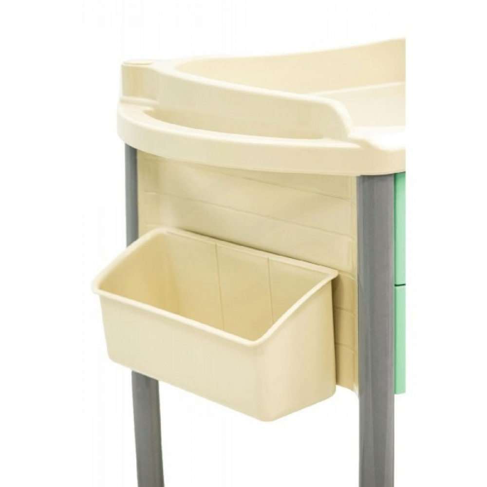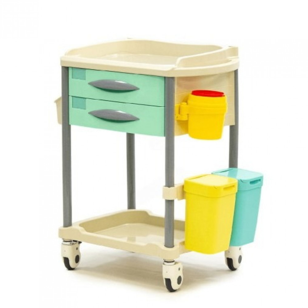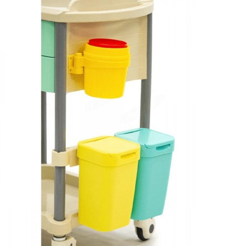 - Расширенная комплектация: Столик оборудован четырьмя дополнительными ёмкостями для организации расходных материалов: 1 открытый контейнер, 1 контейнер для острых предметов (для безопасной утилизации) и 2 контейнера для мусора.