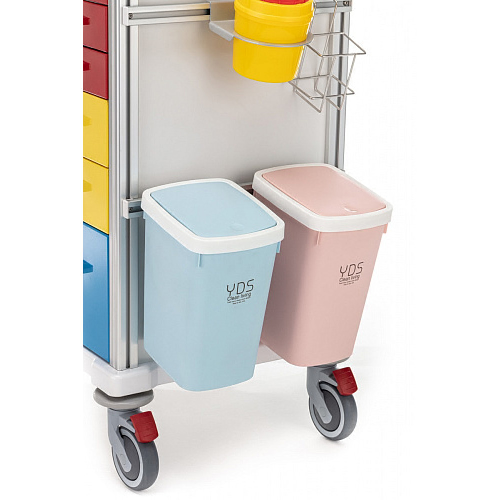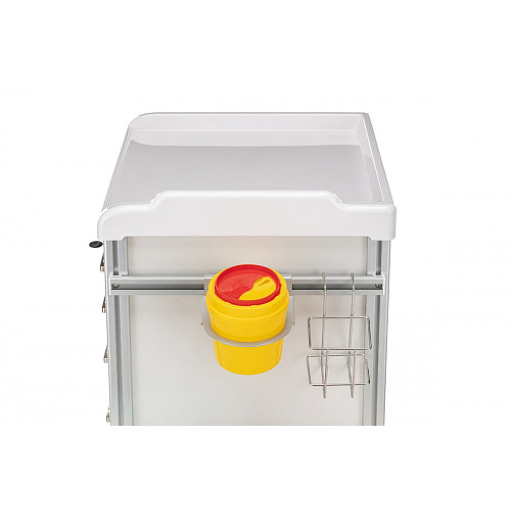 - Для поддержания гигиены предусмотрены 2 пластиковые емкости для отходов с удобной функцией push up, а также специальная емкость для использованных игл и держатель для дезинфицирующего средства.