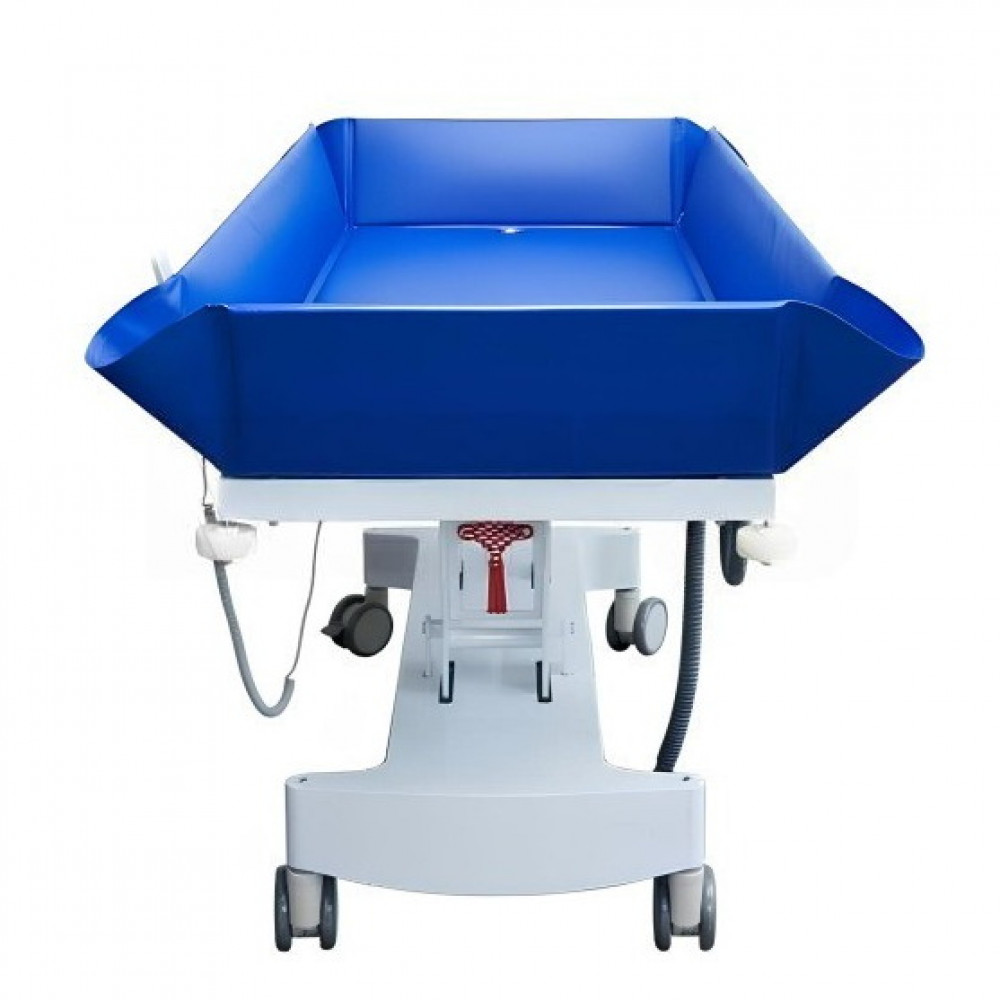 - Ложе и безопасность: Ложе-ванна выполнено из ПВХ. Боковые ограждения из нержавеющей стали обеспечивают безопасность пациента во время транспортировки и процедур.