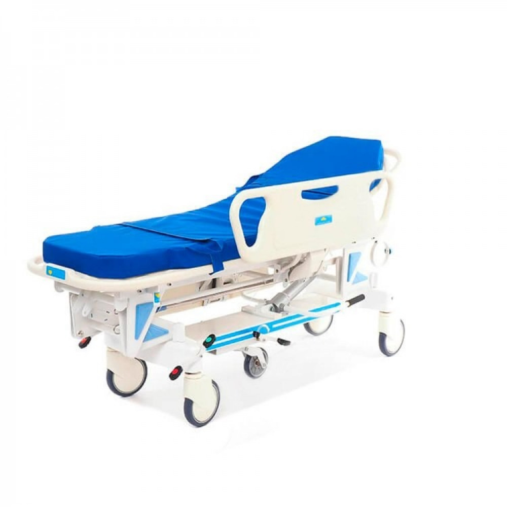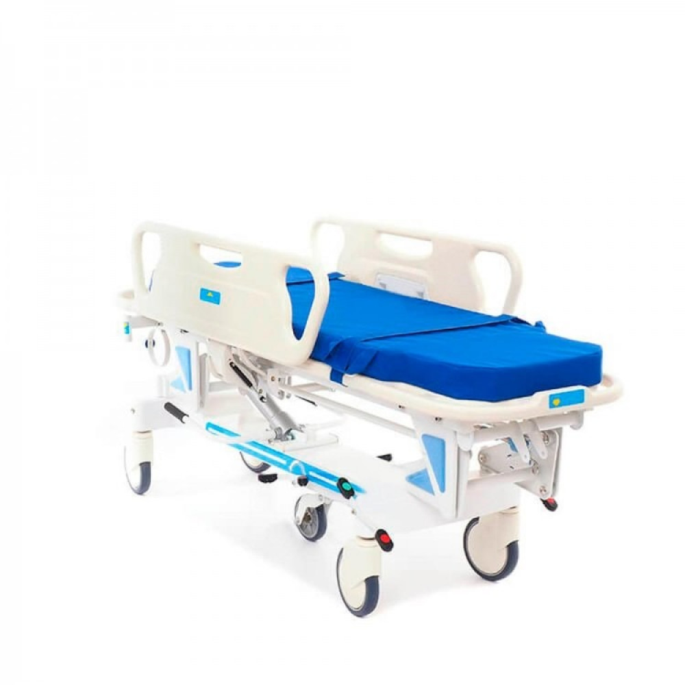 - Гидравлическая регулировка высоты: Высота ложа регулируется педалью с помощью надежного гидропривода, что позволяет персоналу быстро и легко изменять высоту в диапазоне 30 см (700-900 мм), не тревожа больного.