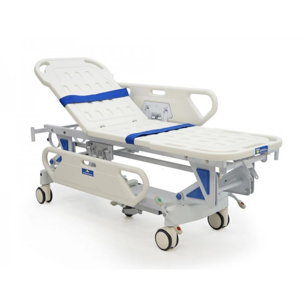 - Безопасность и фиксация: Боковые ограждения из объёмноформованного АВS-пластика работают по принципу ограждений реанимационных кроватей, обеспечивая 100% безопасность. Безопасность фиксации достигается грудным и бедренным ремнями с застёжками фастекс.