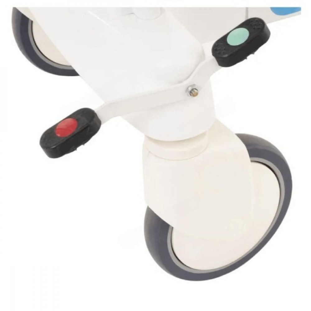 - Безопасность пациента: Боковые ограждения выполнены из объёмноформованного АВS-пластика и работают по принципу ограждений реанимационных кроватей, гарантируя 100% безопасность. Для дополнительной фиксации предусмотрены грудной и бедренный ремни с застёжками фастекс.