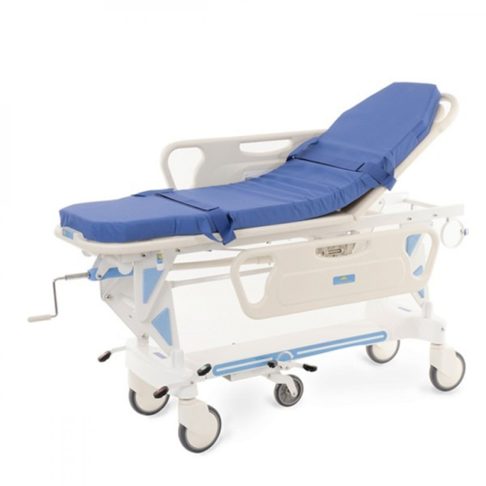 - Комфорт и комплектация: В комплекте идет матрас из 8-см ППУ в съёмном непромокаемом чехле на молнии. Предусмотрена складная инфузионная стойка с подвесом на два флакона и низкое основание с полкой для личных вещей и медицинского оборудования.