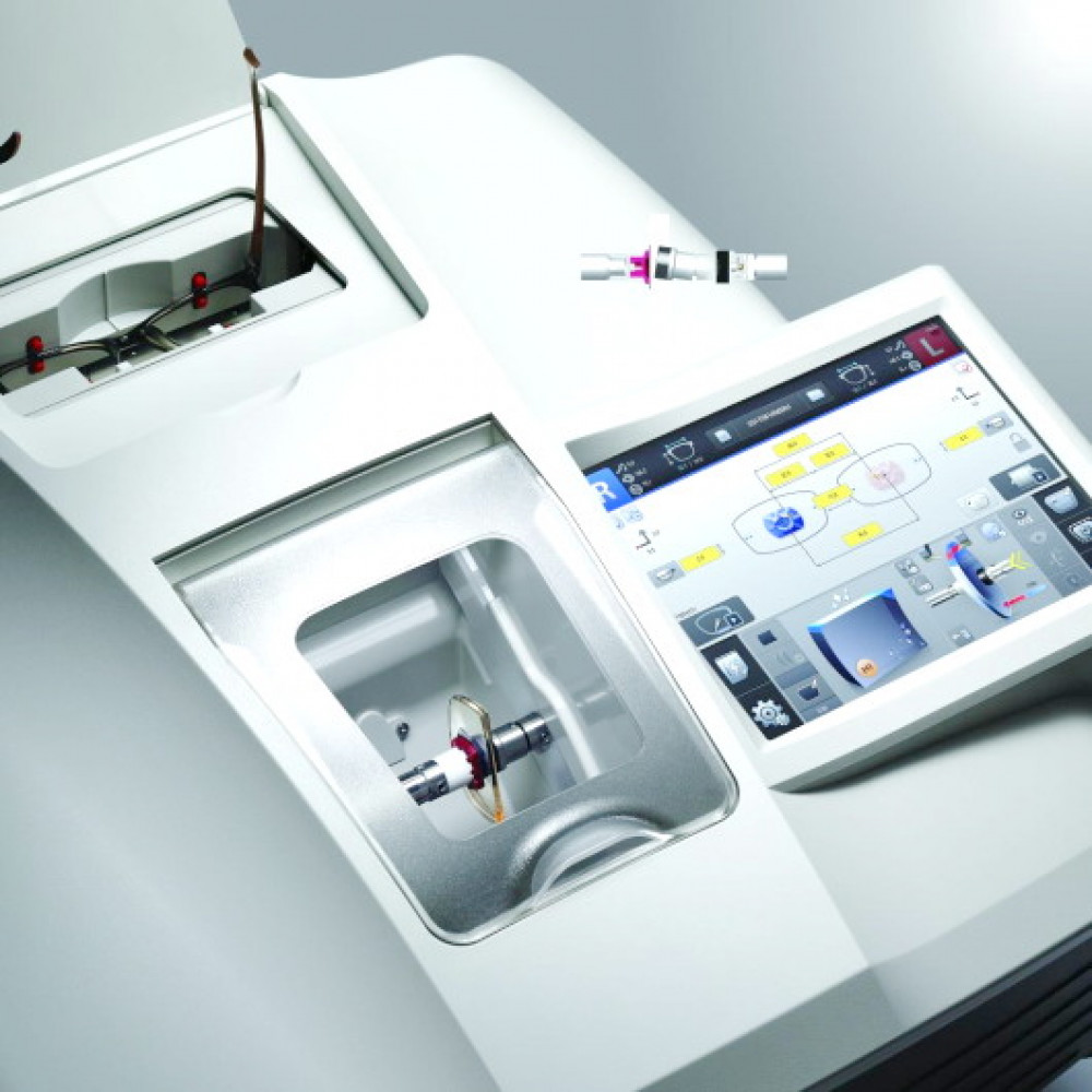 - Станок HPE-410 NTR: Основной блок для трехмерной обработки линз со встроенным трейсером для сканирования оправ. Это делает систему компактной и удобной.